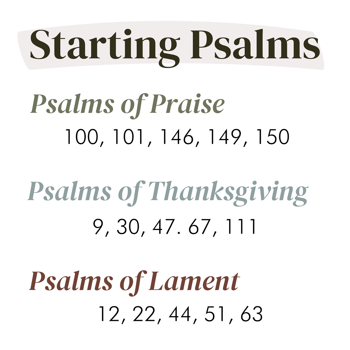 Old Testament theologian, Walter Brueggemann, talks about life and faith in three main phases (which just happen to correlate with the three main categories of Psalms).